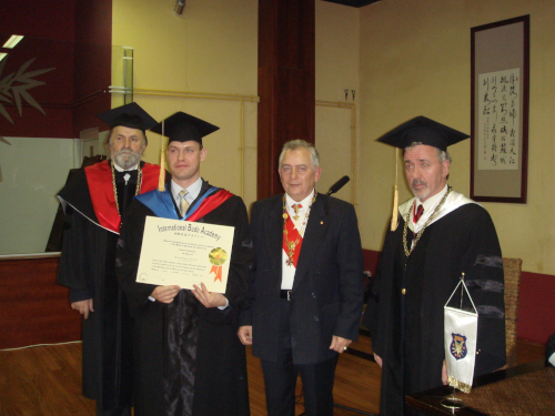 During the Special Training seminar of Karate Do conducted by Prof. Rony KLUGER in Budapest, and celebrating the opening of the new European Budo Centre – the BUTOKUGAN directed by Shihan Attila MISKOLCZI, the IBA leadership decided to promote Shihan István KELEMEN, the "father" of the Hungarian Ju Jitsu, to he rank of 8th Dan Ju Jitsu in a special celebration held in BUTOKUGAN.