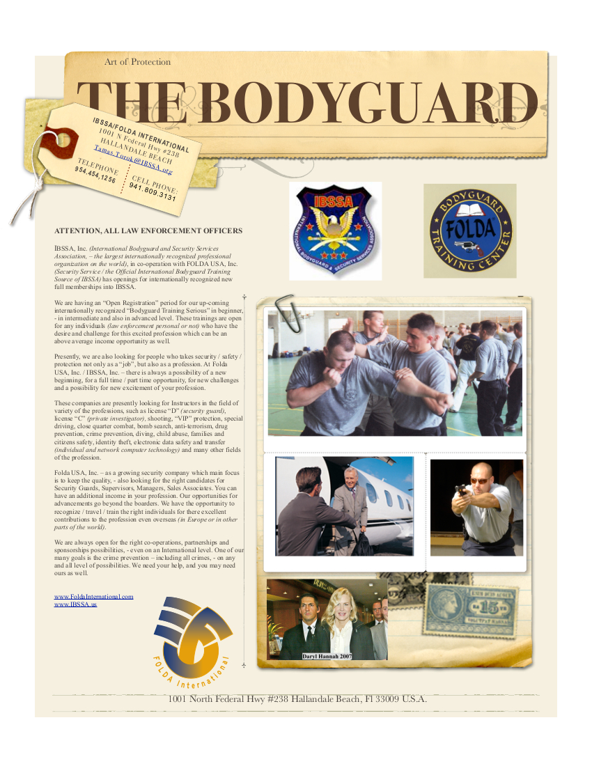 After the State Inspector found everything (office space, training place, educational documents and materials, etc.) "ready-to-go", our already existing "Temporary License" was changed to a "Permanent License" status. This means that the State of Florida officially "awarding" FOLDA USA (as part of FOLDA International) in co-operation and in relationship with IBSSA-USA with a license to teach as an "Official Security Training School / Facility for the State of Florida".