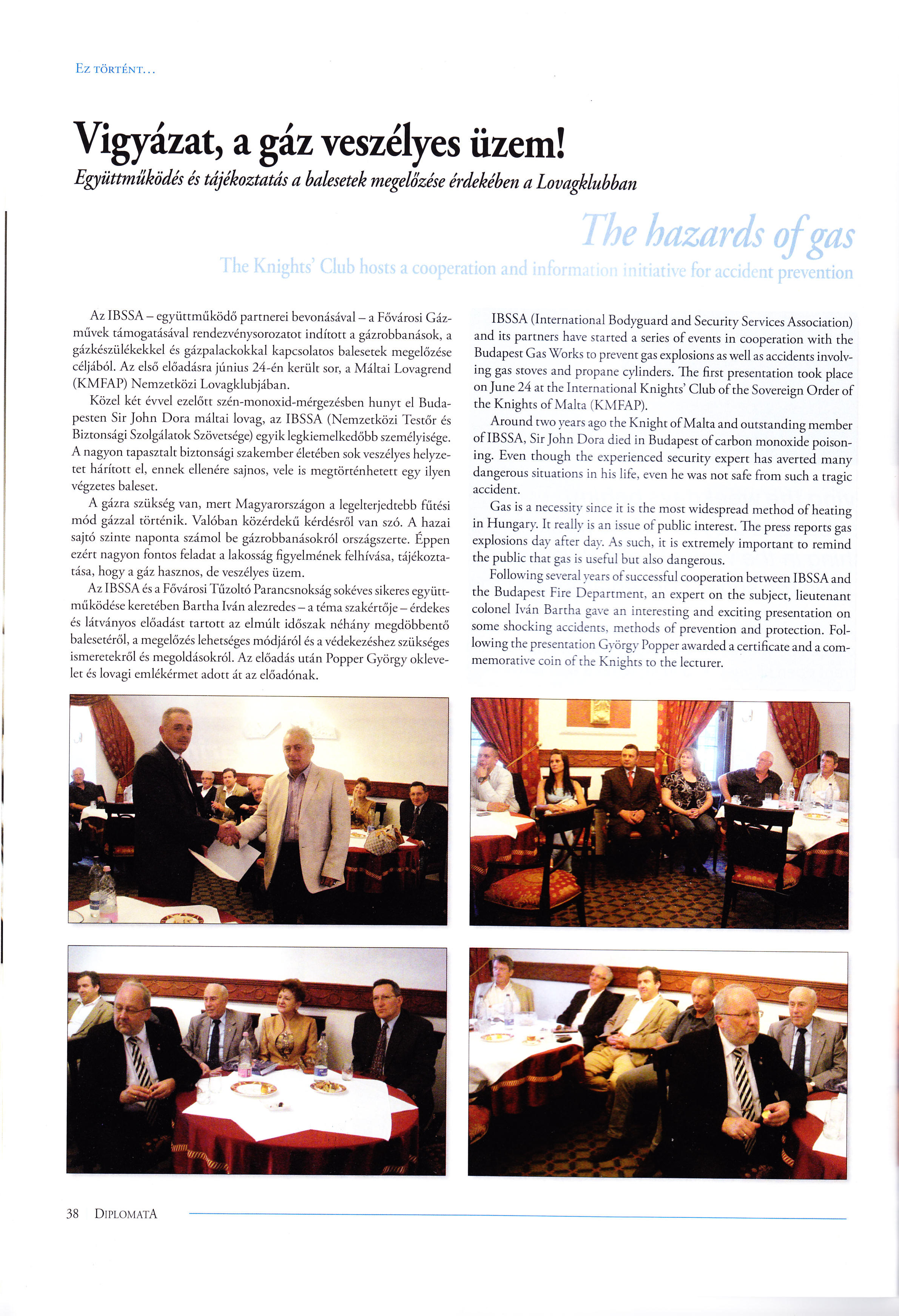 IBSSA and its partners have started a series of events in cooperation with the Budapest Gas Works in order to prevent gas explosions as well as accidents involving gas stoves and propane cylinders. The first presentation took place on the 24th June at the International Knights' Club of the Sovereign Order of the Knights of Malta (KMFAP).