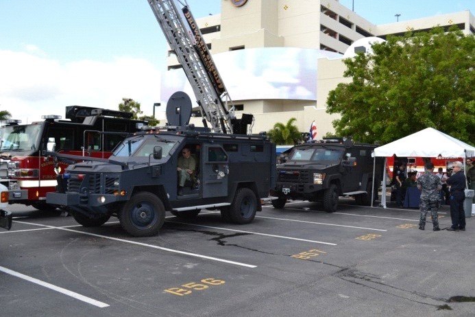 During the expo the technical and vehicle fleet – related to all Law Enforcement units – was exhibited. Motor units were represented at this safety expo, as well as highway interceptor units (trapping technique), SWAT units, border guard units, mobile water units, air units, K9 units, special fire brigades, military troops, FBI, and ATF.