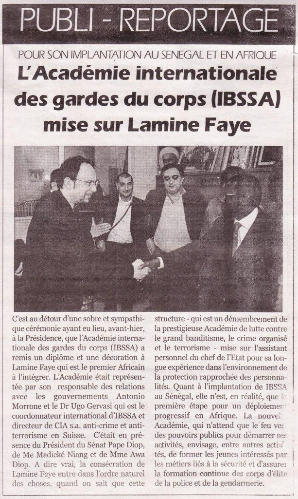 The documents were handed over officially to the new members by Dr. Ugo GERVASI – International Coordinator of IBSSA, and Mr. Lamine FAYE – Representative of IBSSA for Senegal, who is also Head of the Special Department providing security for the President of Senegal.