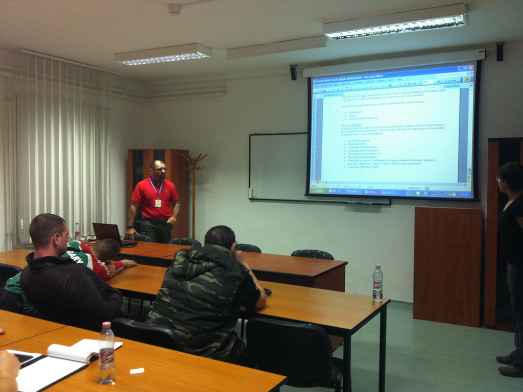 Precisely 32 students (mostly IBSSA members) from 10 countries registered to the training course and the number of foreign participants was outstanding, again! The following nationalities were among the International audience: Bosnian, Belgian, Greek, Italian, Dutch, Latvian, Romanian, Slovak, Turkish, and not to forget the hosts, the Hungarians. All different nationalities, but only one language that of the professional bodyguard.
