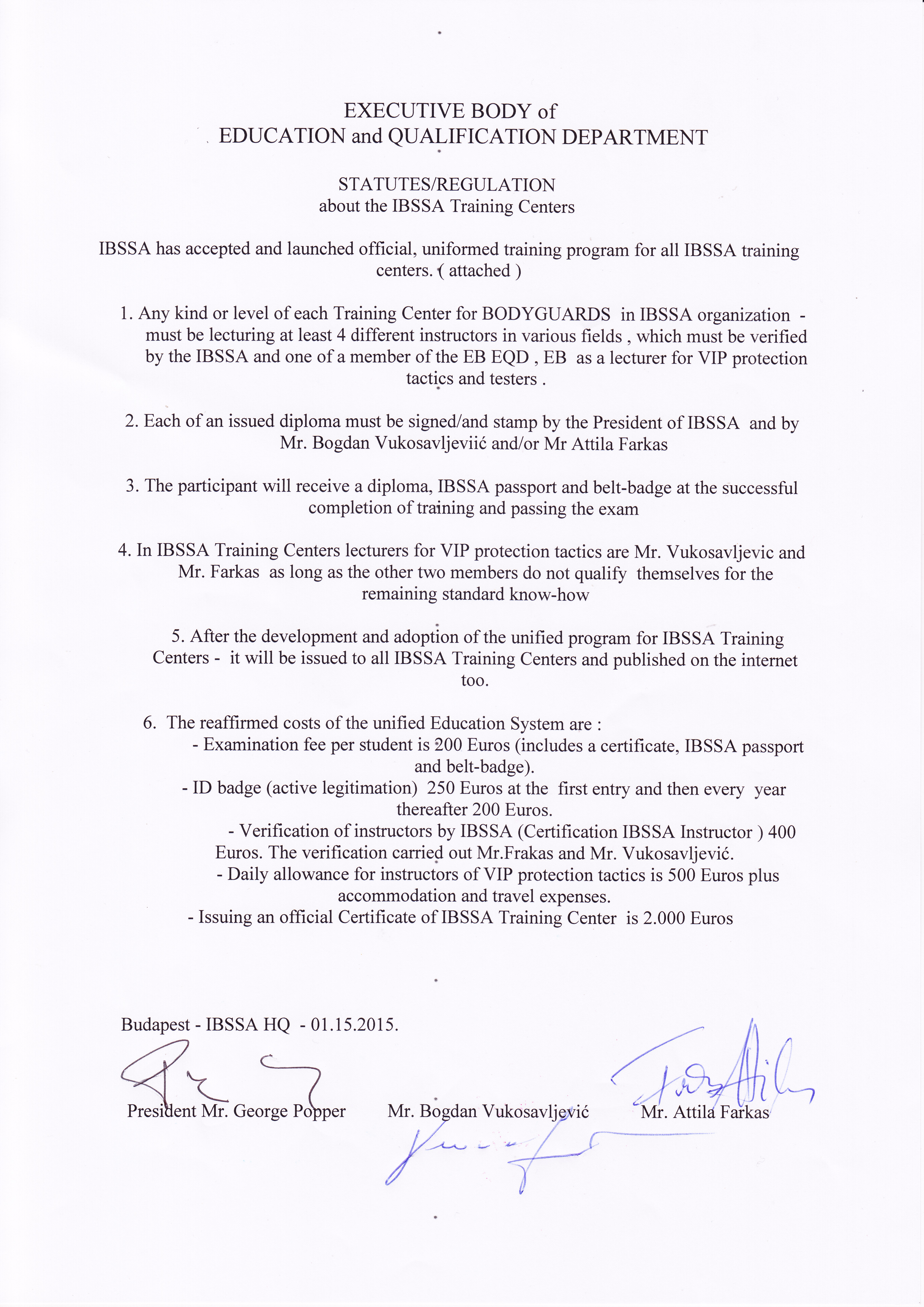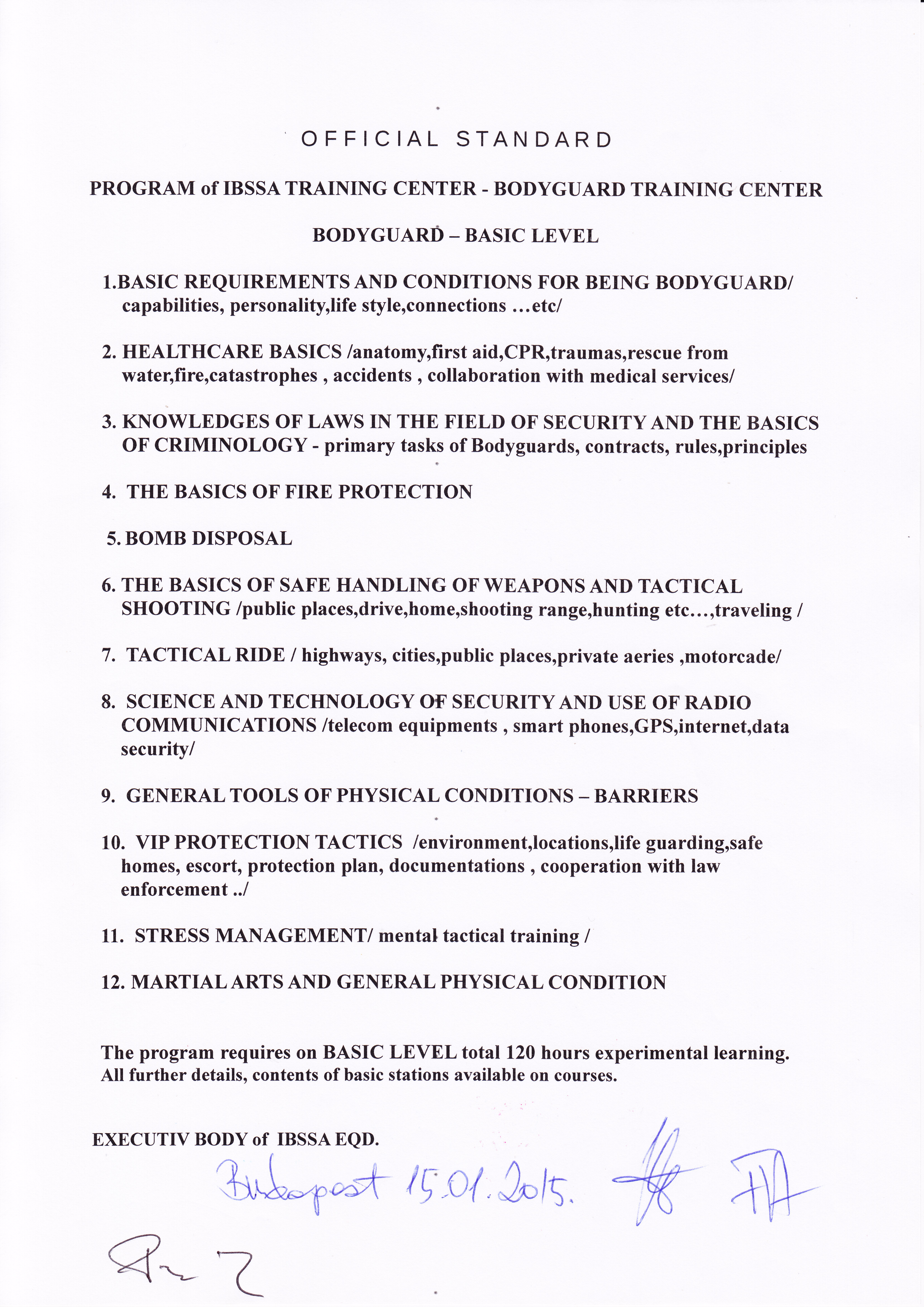 We wish to inform all our Master Teachers and Instructors, as well as the IBSSA Training Centres that on the 15th January 2015 the official, uniformed training program has been accepted and launched by the EQ Department of IBSSA. Every Official Training Centre of IBSSA has 30 days to adopt to the unified program and update its own training system in case of IBSSA Trainings.