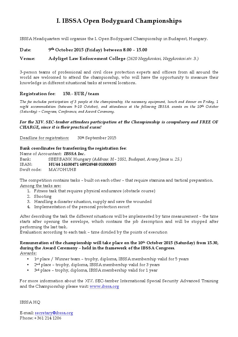 Information on the I. IBSSA Open Bodyguard Championships - 2015