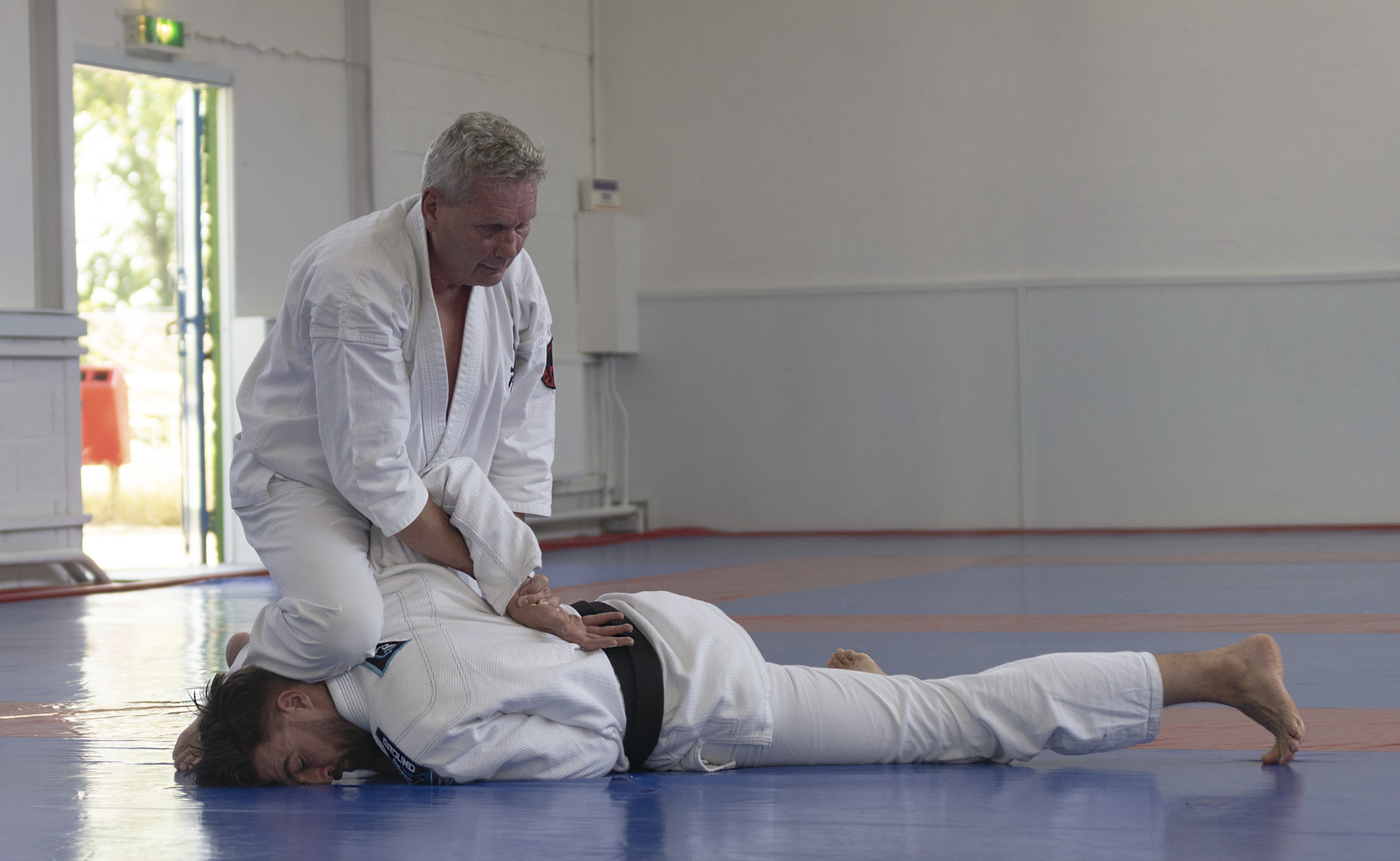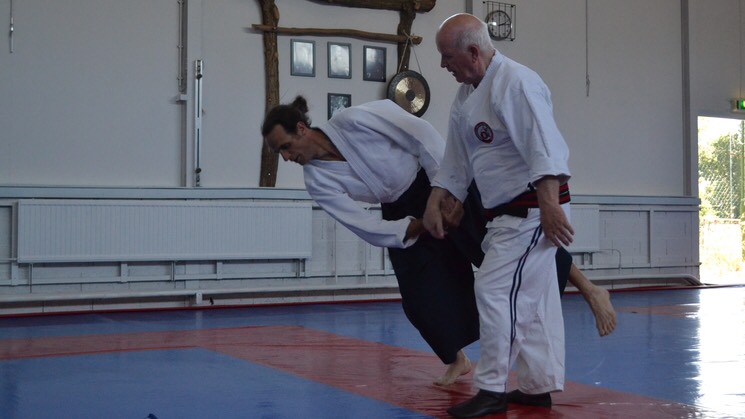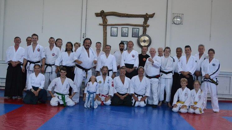 Cees de Jongh (IBA), 8. Dan Aiki Jutsu and Shihan of the Wakai Ryu group and Bart Hagen, 7. Dan Kyokushinkai Karate, completed the afternoon program. Martijn Bogaerts, 4. Dan Aiki Jutsu and MS patient gave lessons, too. He showed us that with right breathing techniques and little effort by using the strength of the opponent Aiki Jutsu is a beautiful sport to practice, even for MS patients. The day has been very successful despite the incredible high temperature in the dojo.