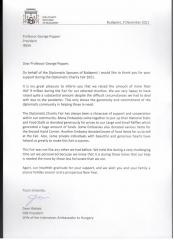 Thank You Letter to IBSSA for the 10th Diplomatic Charity Fair in Budapest, Hungary