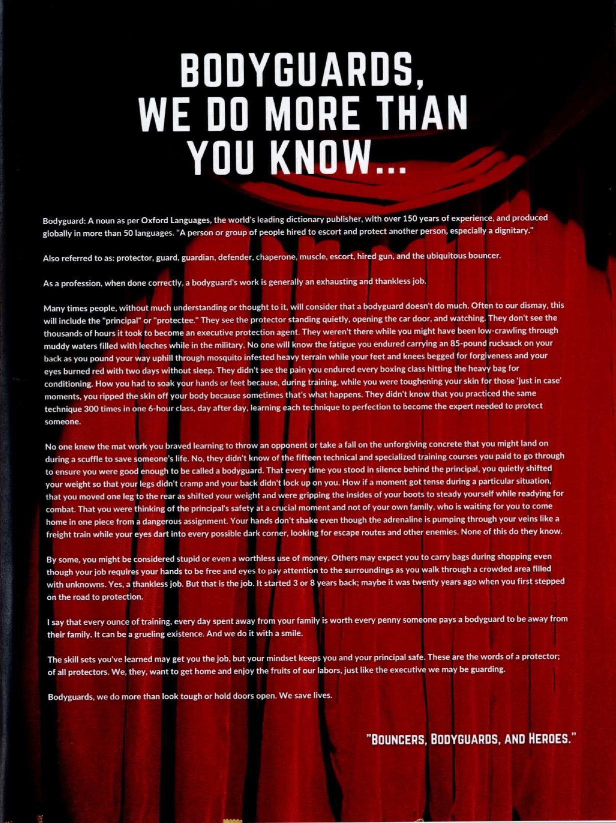 Bodyguards, we do more than look tough or hold doors open. We save lives.