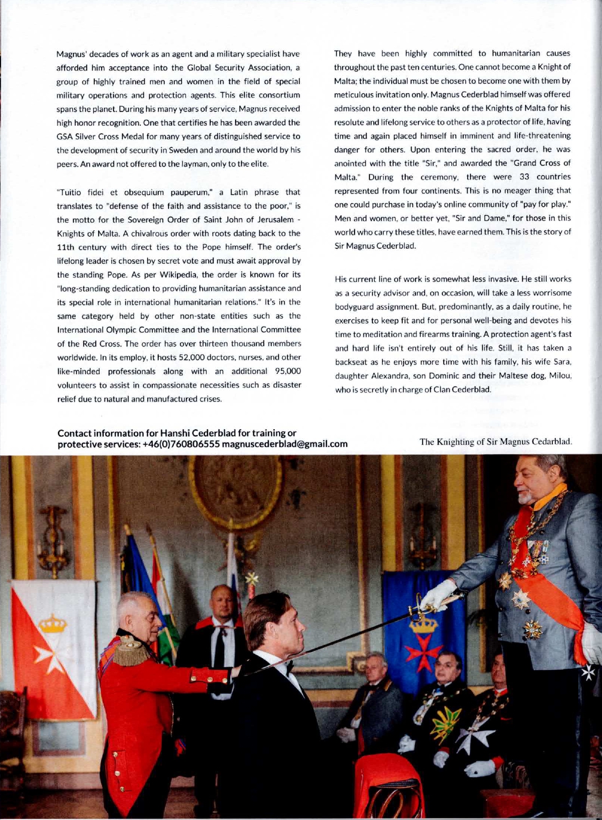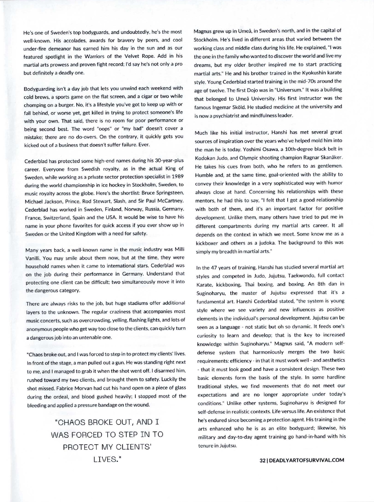 The following article has been published about Hanshi Magnus Cederblad in the Deadly Art of Survival Magazine – Warriors of the Velvet Rope column: