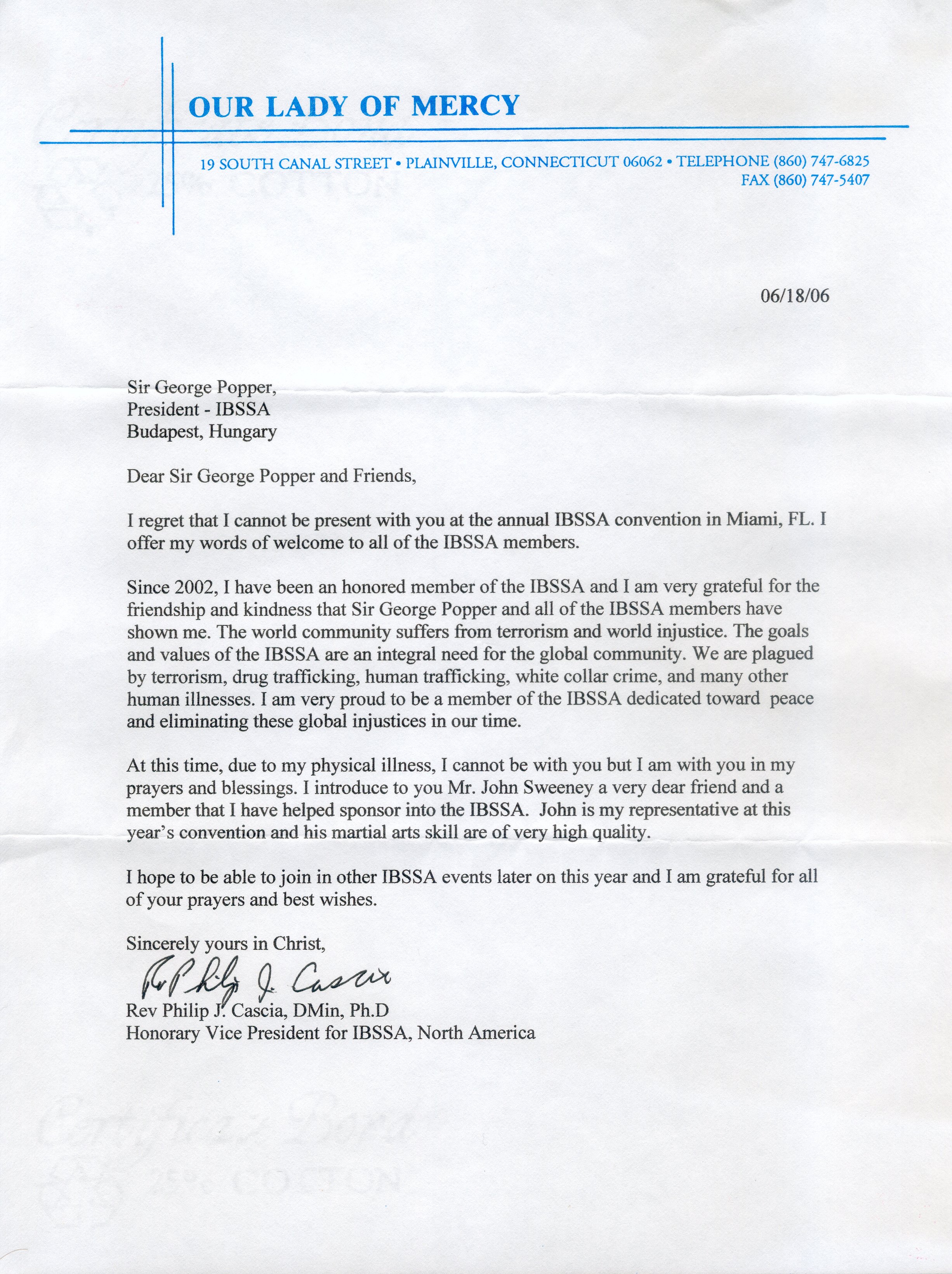 00362 - 11th Congress Greetings of Rev. Philip J. CASCIA – Honorary Vice President of IBSSA for the American Continent ANNEX 2